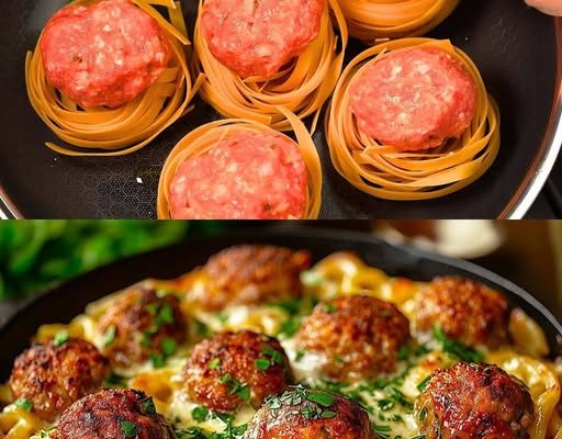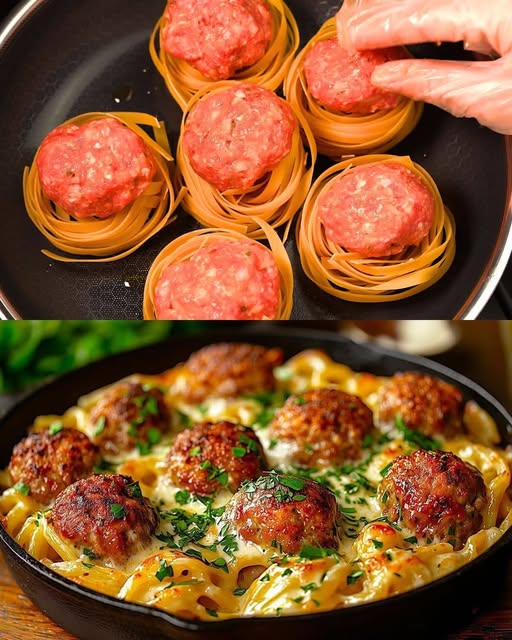 Cheesy Meatball-Stuffed Tagliatelle Nests: A One-Pan Comfort Food Masterpiece