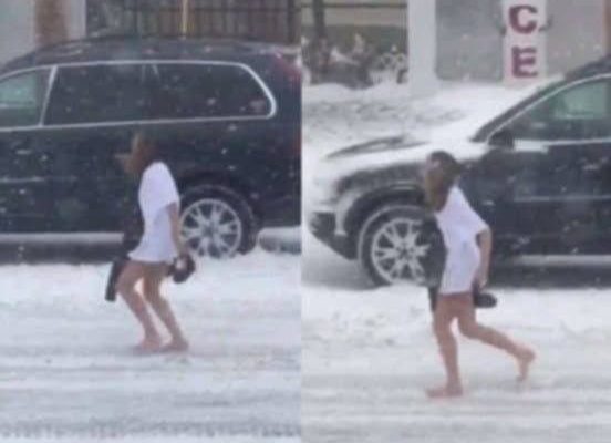 The clip was posted online on by West Virginia-based Twitter user Chandlar Fowler, who suggested one reason for the woman’s sparse attire. WATCH THE VIDEO BELOW: